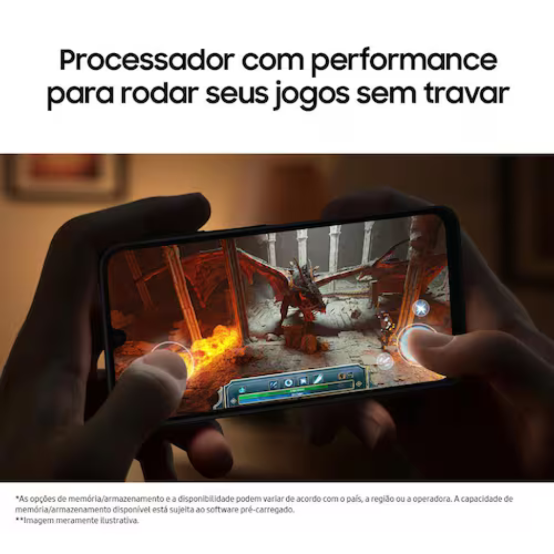 A tela de 6.7 polegadas super AMOLED com resolução FHD+ 1080 x 2340 pixels confere cores vibrantes e um contraste excelente, proporcionando uma boa qualidade visual para assistir vídeos, navegar nas redes sociais e jogar games.Desempenho e capacidade satisfatórios